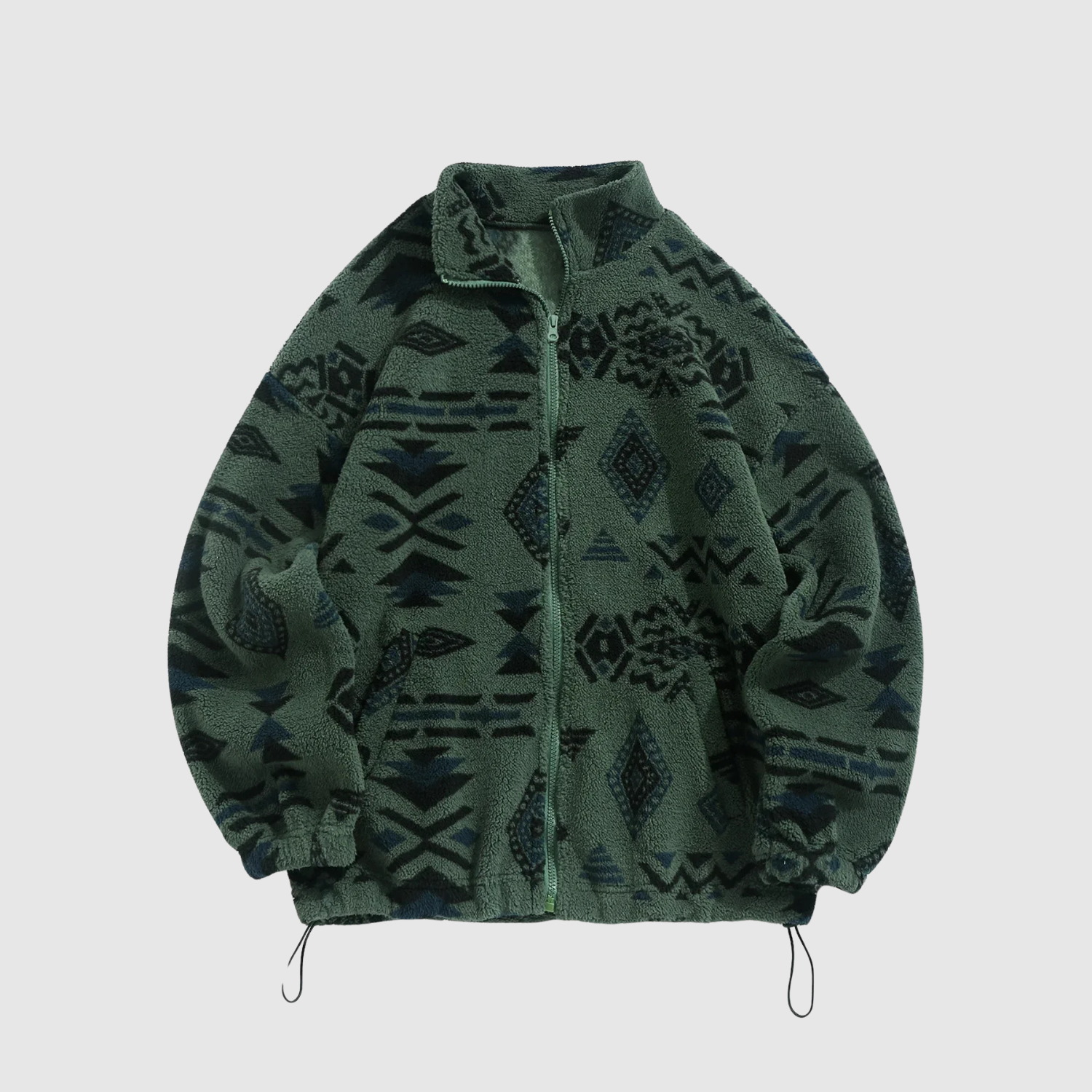 Флийс яке с връзка отдолу и етнически вдъхновен мотив, който придава модерен щрих. Перфектно за прохладни дни и неформални визии.
