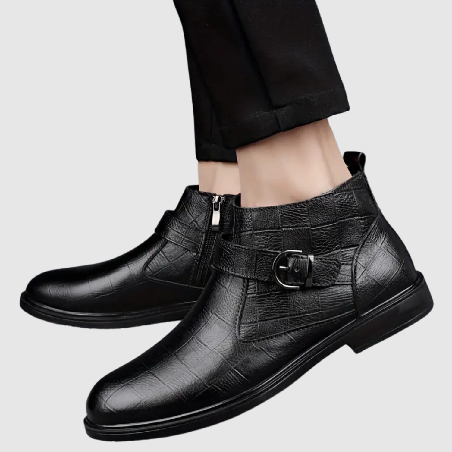 Ботушите Хенрик с катарама са създадени за мъже, които ценят изтънчената простота. Гладката кожена повърхност, в комбинация с елегантната катарама, придава вечен и изискан вид, който идеално подхожда както за формални поводи, така и за ежедневна употреба. Удобното прилягане и леко гъвкавата подметка осигуряват приятно изживяване през целия ден.