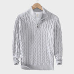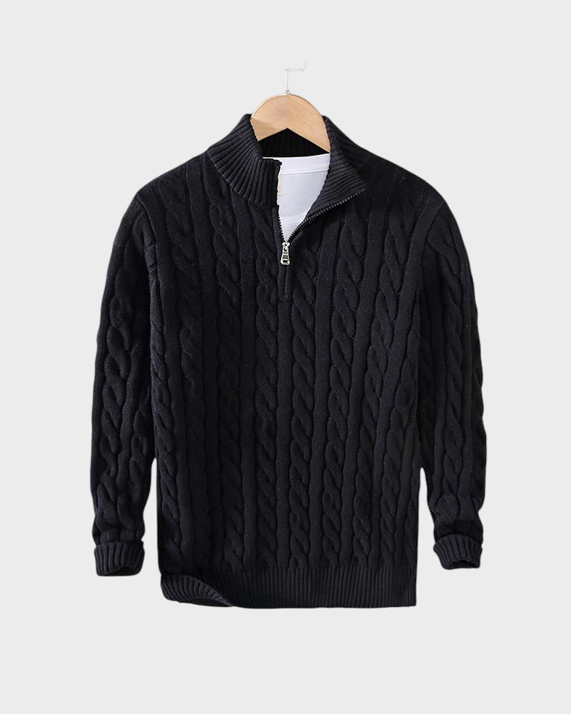 Стилен и удобен пуловер, който комбинира класически дизайн с модерен акцент. Изработен от мека и висококачествена материя, той осигурява комфорт и топлина през целия ден. Фините плетени детайли добавят изтънченост, а ципът в горната част позволява лесно регулиране според настроението и повода. Подходящ както за ежедневието, така и за по-елегантни случаи.
