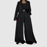 Гащеризонът Анна е перфектен избор както за работа, така и за вечерни събития. Той комбинира фигурално бюстие с къс блейзър, който подчертава силуета по елегантен и уверено начин. Материята има леко разтягане, което осигурява комфорт през целия ден, а детайлът с колан добавя щрих на изискана стил.