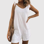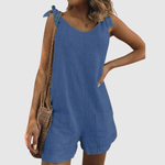 Въздушен и прост гащеризон, идеален за неформалния летен вид. Проектиран с връзки на раменете за женствено докосване и изработен от лек материал, който предлага комфорт и стил. Идеален за ваканции, плажни излети или ежедневна употреба в топлите дни.