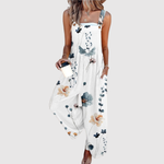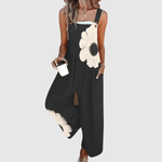 Стилен гащеризон с широки крака и красиво цветно мотив, който съчетава комфорт с женственост. Лекото платно придава въздушно усещане, перфектно за почивка и ежедневна употреба. Многофункционален избор, който може да се стилизира нагоре или надолу в зависимост от случая.
