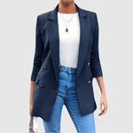 Това дълго сако комбинира класически силует с небрежен вид, което го прави перфектно за ежедневието и официални поводи. Леката кройка го прави лесно за стилизиране с дънки и елегантни панталони.