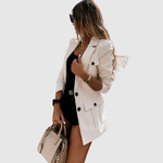 Тази блейзър рокля съчетава изискана кройка с женствено докосване. Може да се носи както като рокля, така и като слой над аутфит – перфектна за бизнес и вечерно носене.