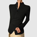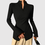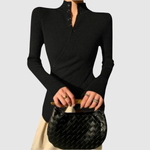Тази рибена плетена блуза съчетава комфорт и стил. Детайлът с цип отпред придава модерен акцент, докато прилепналата кройка подчертава фигурата по изискан начин.