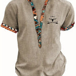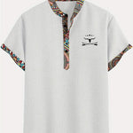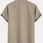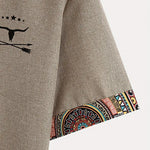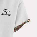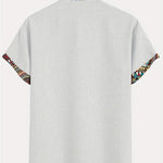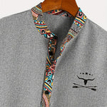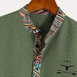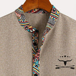 Манжетите и вътрешността на бутоните са украсени с геометрични мотиви, вдъхновени от племенното изкуство. Тези оригинални акценти повишават естетиката на ризата и добавят уникално измерение на вашия вид. Идеална за показване на изразителна личност в неформален стил.