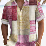 Оригинален патчворк мотив : Нейният балансиран модел от цветни блокове привлича вниманието, като остава хармоничен. Разнообразните нюанси създават стил, който е едновременно динамичен и уверен, идеален за неформални излизания или социални събития през уикенда.