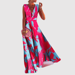Течаща макси рокля с дълбоко V-образно деколте, която съчетава елегантност и комфорт. Перфектна за летни партита, ваканции или романтична вечер навън. Лекото материал пада красиво и придава изискан вид както в едноцветен, така и в шарен дизайн.