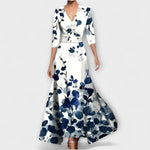 Позволете си да бъдете обгърнати от елегантност и енергия в тази дълга рокля с цветен принт. Нейният плавен силует и кръстосана деколте подчертават фигурата с вечен женствен щрих. Перфектна за да се откроите на всякакъв повод - от специални събития до ежедневни излети с стил.