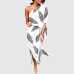 Тази асиметрична рокля комбинира свеж крой с впечатляващ цветен десен. Перфектна за летни партита, дни на плажа или вечер навън, когато искате да добавите щрих от цвят и индивидуалност.