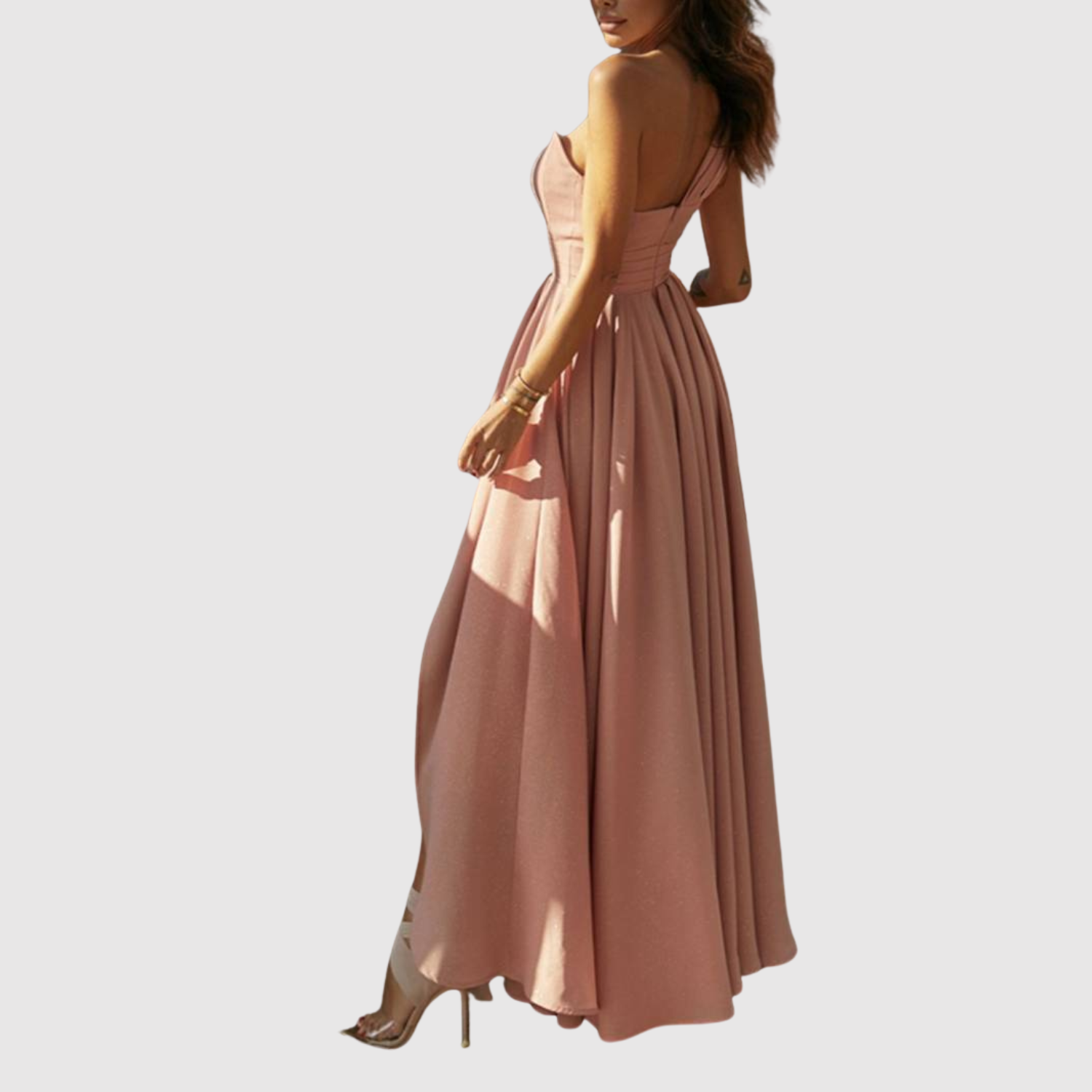 Тази макси рокля е проектирана с ласкателна деколте и елегантен разрез, който добавя софистициран вид. Идеална за партита, сватби и романтични вечери.