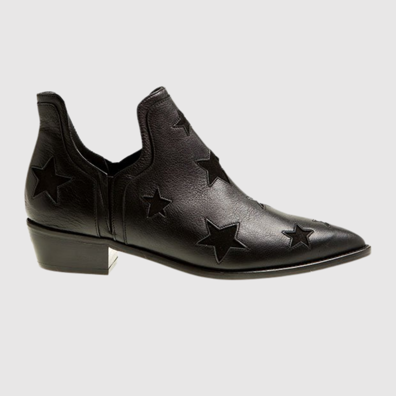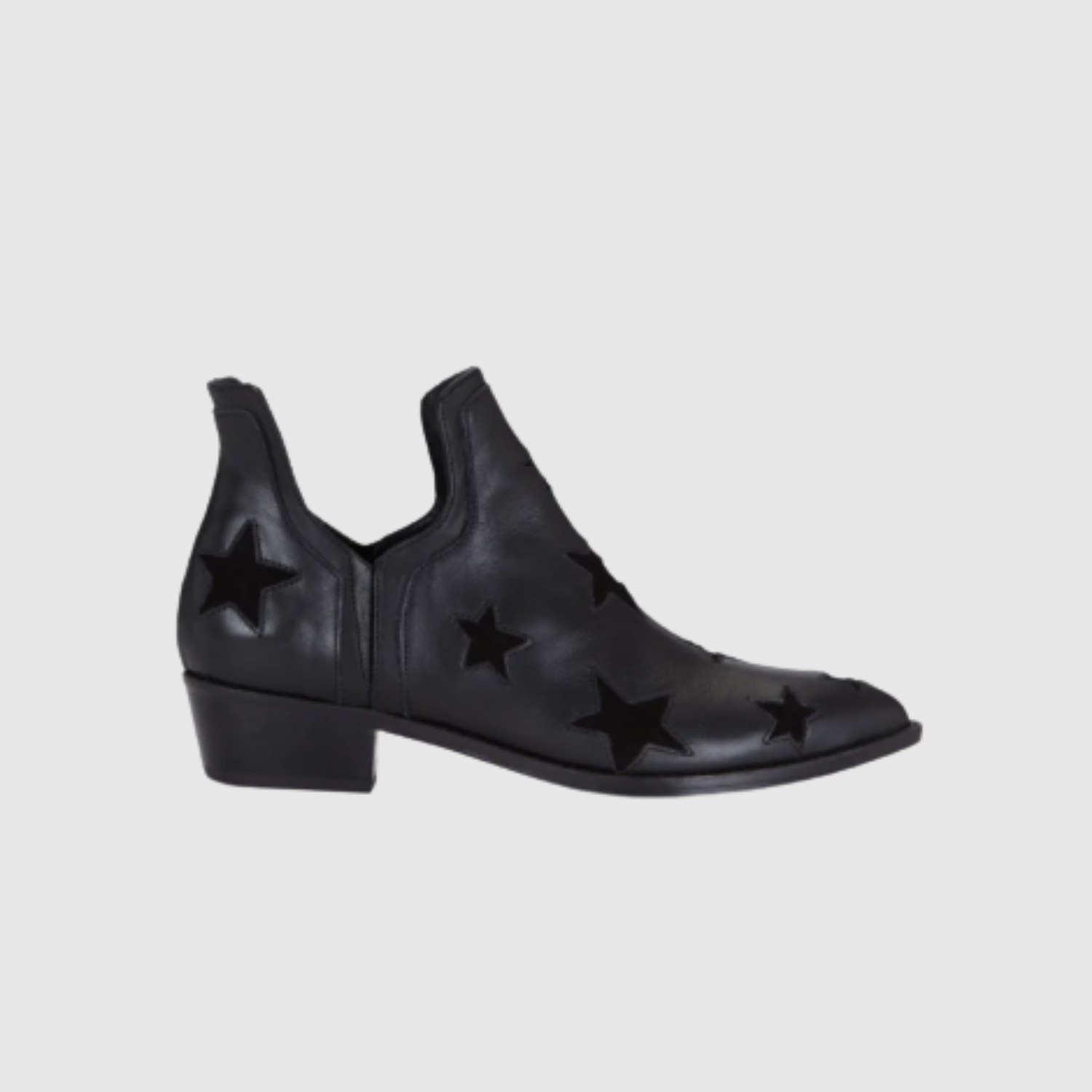 Тези черни кожени боти комбинират ъглов вид с особено излъчване на релефен звезден мотив. Ниската пета осигурява комфорт в ежедневието, докато острието придава елегантност. Перфектни за както за ежедневни, така и за вечерни тоалети.
