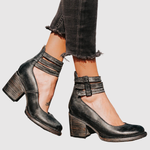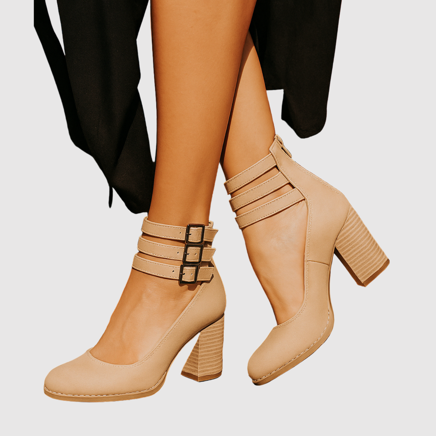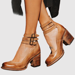 Тези чизми комбинират класическа силует с модерни детайли като двойни катарами и блок ток. Каишките осигуряват стабилност и стилен вид, докато средно високият ток ги прави идеални за целодневно носене – както неформално, така и елегантно.