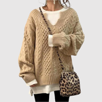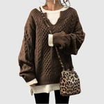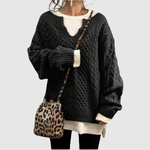 Тази кабелно плетена блуза съчетава вечен дизайн с удобен и комфортен силует. Мекото качество я прави перфектна за студени дни, докато елегантният плетен модел придава изискано усещане. Лесно се стилизира с дънки и легинси.