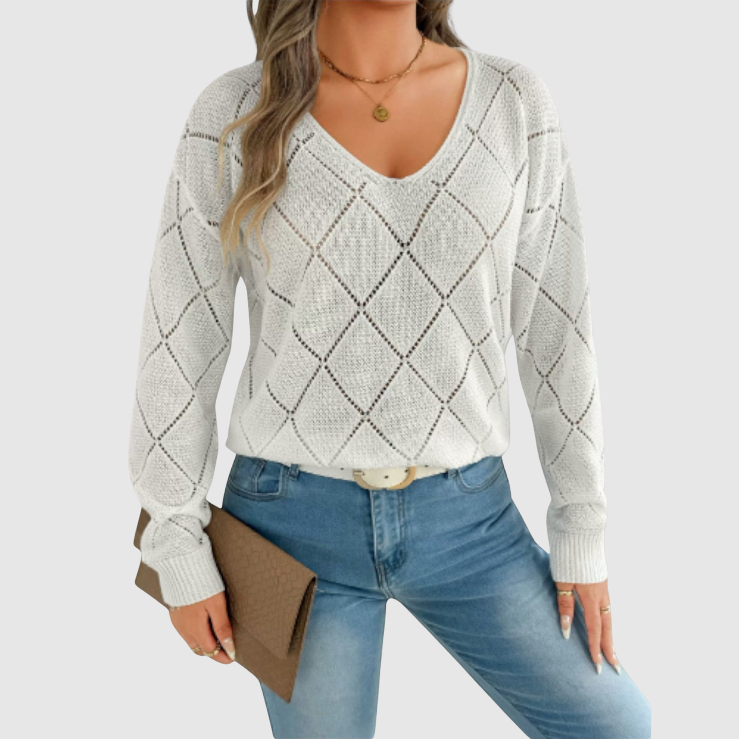Клара – Пуловер с елегантно V-образно деколте