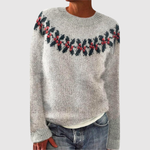 Този пуловер е украсен с фини зимни мотиви, които придават очарователен и сезонен вид. Мекото качество го прави удобен за носене, идеален както за ежедневна употреба, така и за релаксиращи вечери.