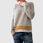 Лек и стилен пуловер с дискретни ивици и контрастни детайли в долната част. Меката кройка го прави както уютен, така и елегантен, перфектен за ежедневна употреба и релаксиращи моменти.