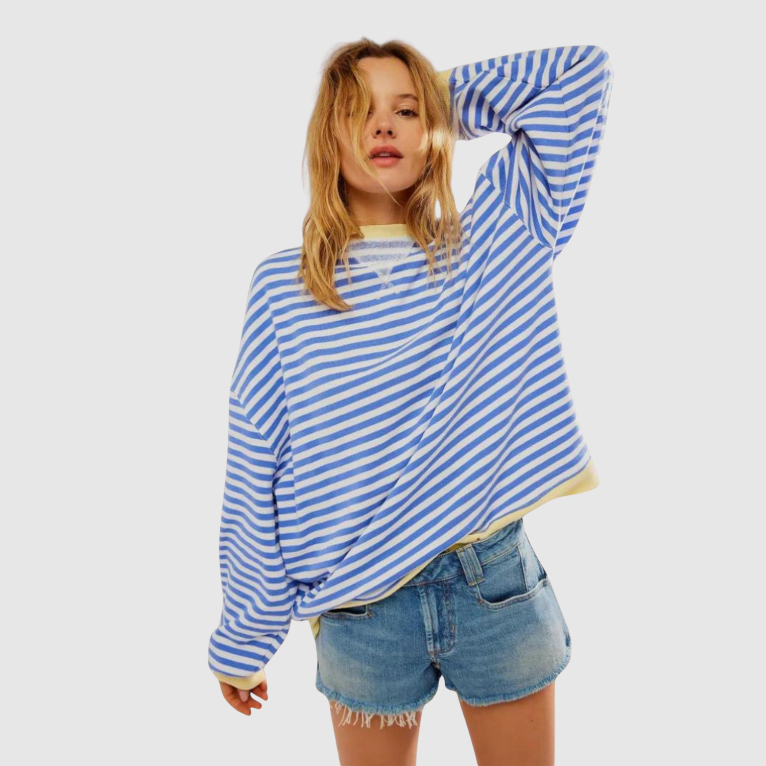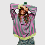 Този райетен пуловер придава игрив и модерен вид, перфектен за ежедневието. Мекото качество осигурява комфорт, докато свежите контрастни цветове добавят енергия към всяко облекло.
