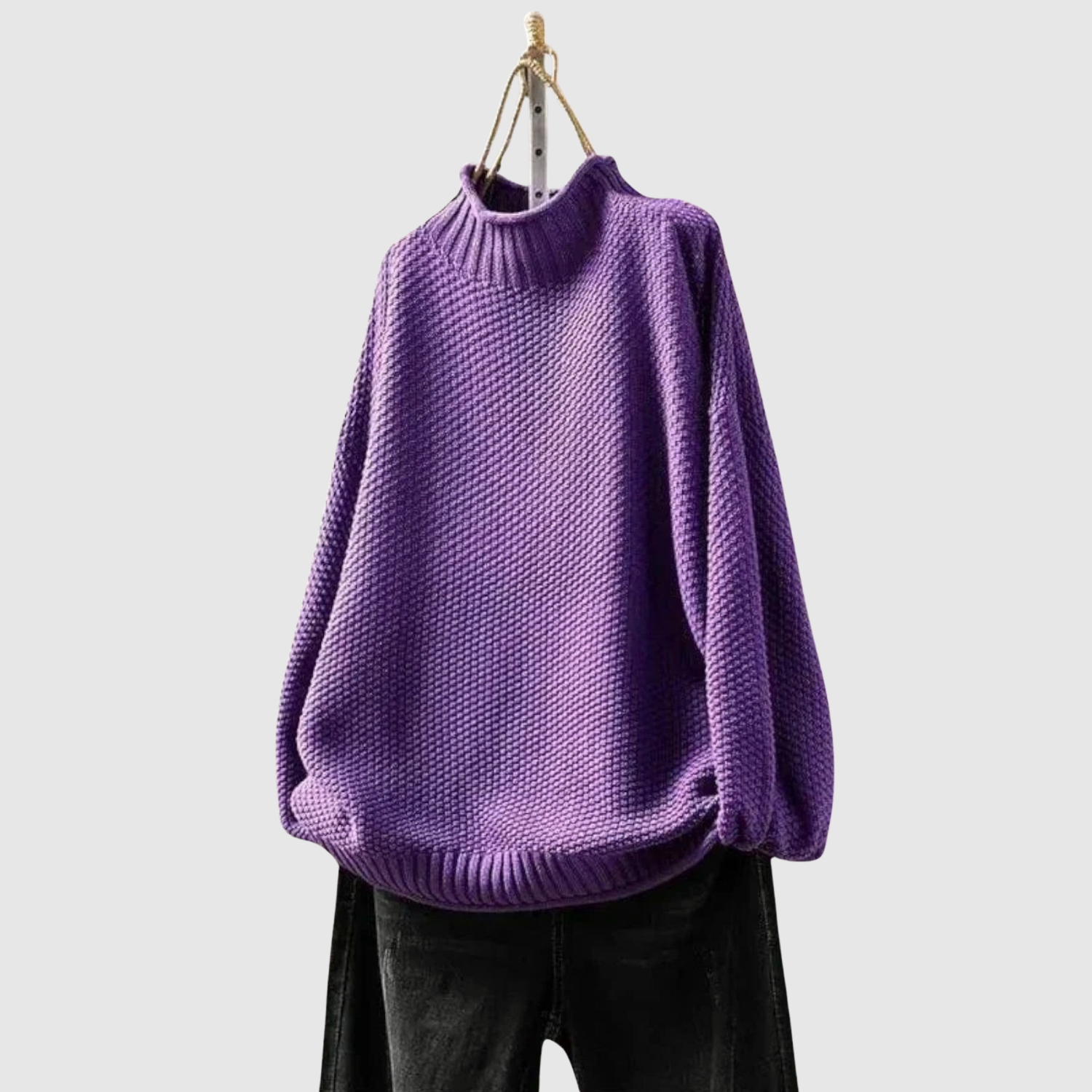 Клара – Структурен пуловер с свободна кройка и висока яка