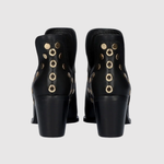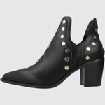 Тези боти съчетават декоративни метални детайли с модерен силует и стабилен блоков ток, което създава мощен и уверено изглеждащ вид. Удобното прилягане ги прави идеални за ежедневна и вечерна употреба – перфектни за теб, която искаш да се открояваш.