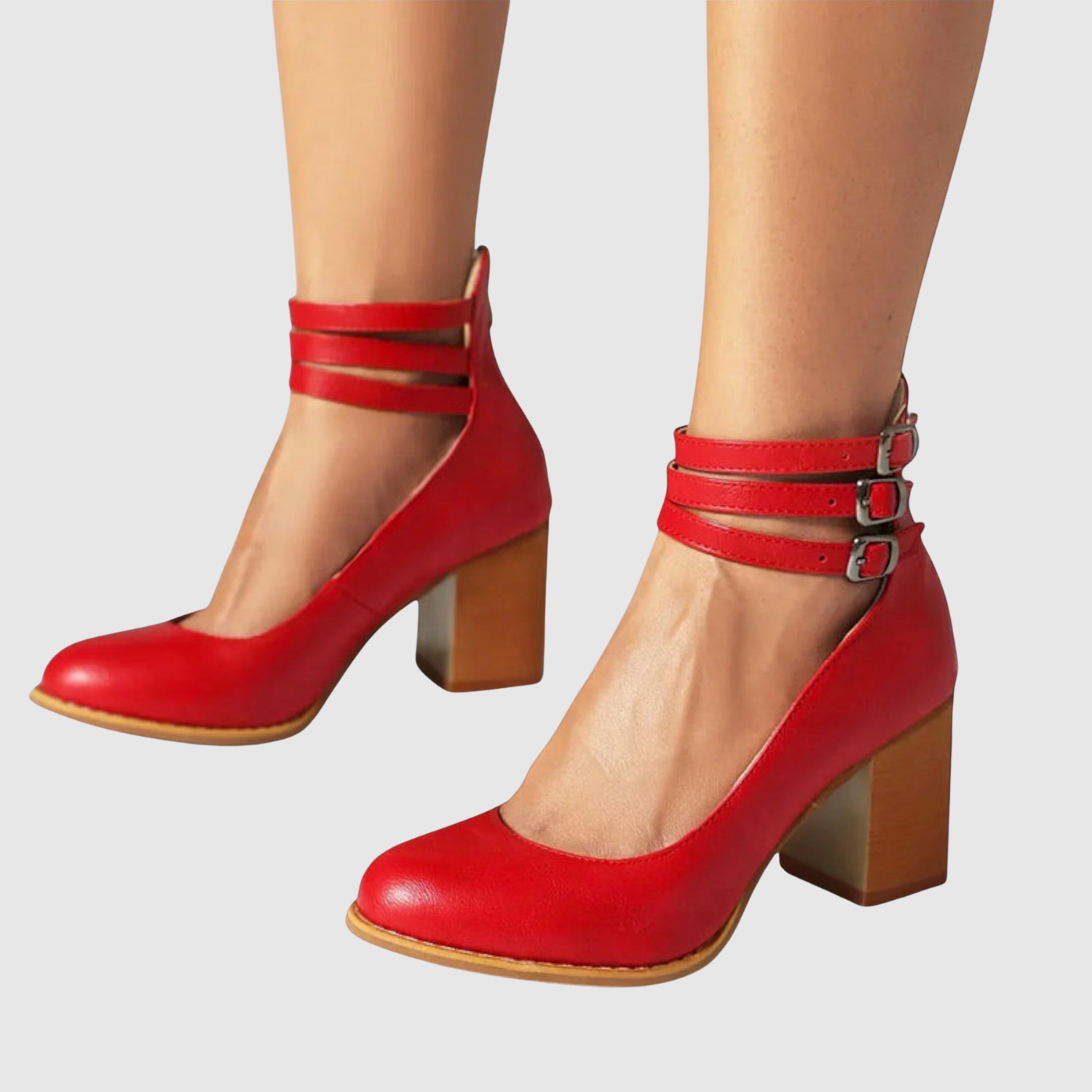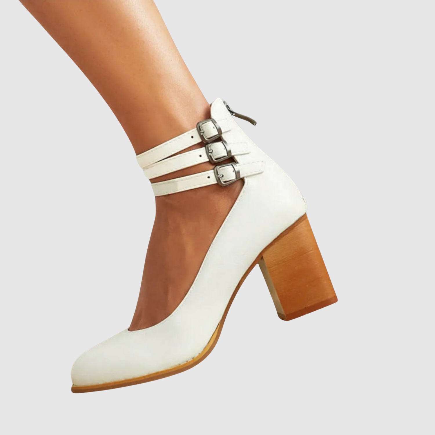 Елегантните обувки Alira са смела, но изискана интерпретация на класическата елегантност. Те са изработени от материал и имат тънък, закръглен нос, който е подкрепен от удобен квадратен ток и тройни глезенни ленти за допълнителен стил. Обувките Alira са проектирани да комбинират мода с функционалност и осигуряват дълготраен комфорт, независимо дали става въпрос за срещи, вечерни събития или елегантни излети в града.