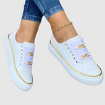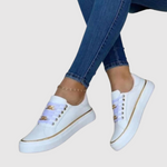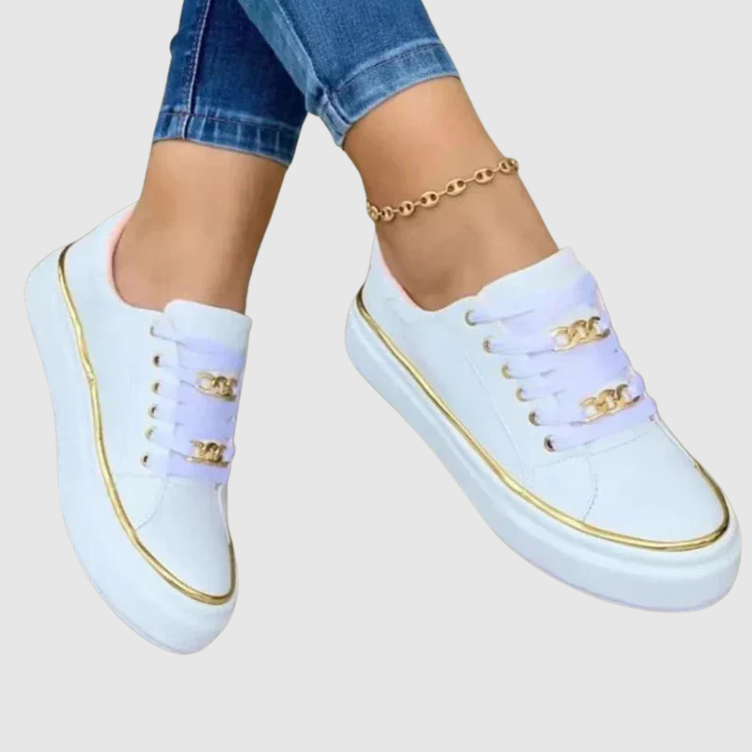 Маратонките Клара придават модерен и луксозен вид благодарение на златните детайли. Удобното прилягане и гъвкавата подметка ги правят идеални за ежедневна употреба и специални поводи. Перфектни за вас, които искате да съчетаете комфорт и елегантност.