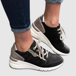 Маратонките Клара съчетават комфорт и функционалност с модерен вид. Ергономичната подметка осигурява подкрепа през целия ден, докато дишащият материал гарантира, че краката ви се чувстват свежи и удобни. Перфектни за ежедневна употреба и по-дълги разходки.