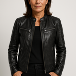 Тази ненатрапчива кожена якета предлага перфектен баланс между модерно и изтънчено, което я прави подходяща за всеки повод. Носи я над обикновена тениска за небрежен вид или я комбинирай с блуза за стилен външен вид. Вечен елемент, към който ще се връщаш отново и отново.