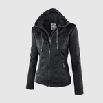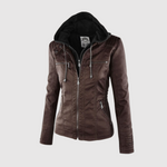 Елена - Дамска якета с кожен вид с качулка и ципове