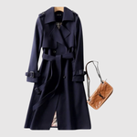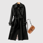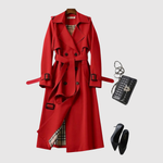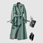 Това дълго палто е иконичен елемент от връхните дрехи, който съчетава елегантност и функционалност. С колан на талията, класическа ревера и лек материал, то е перфектно за ежедневието и по-официални поводи.