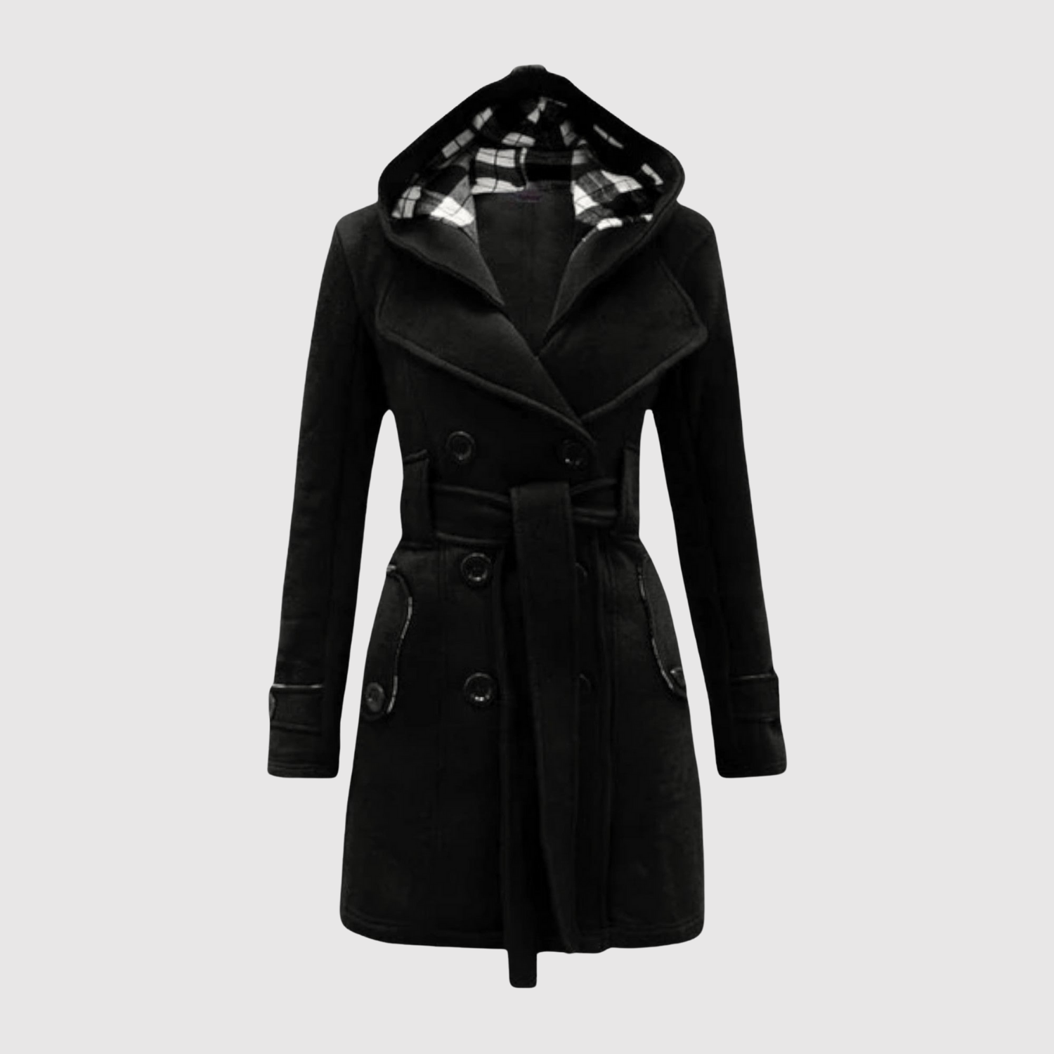 Това дълго палто с качулка комбинира класически стил и функционалност. С колана в талията, мекото подплънка и модерния дизайн, то е перфектно за да ви държи топло и стилно в студените дни. Идеално както за ежедневна употреба, така и за по-елегантни поводи.