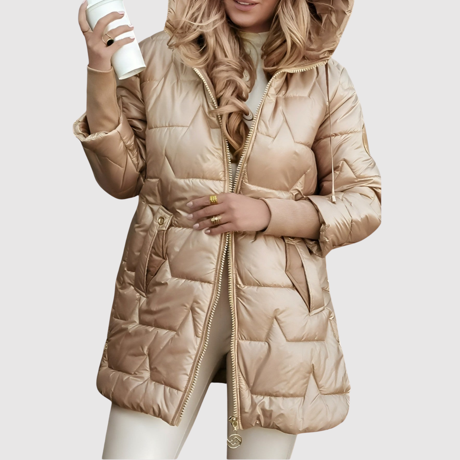 Това дълго, полустрето яке осигурява максимална защита срещу зимния студ. Със своята квилтна конструкция, сваляща се качулка с изкуствена кожа и регулируем силует, то съчетава функционалност и елегантност в едно. Незаменим зимен фаворит както за всекидневието, така и за специални поводи.