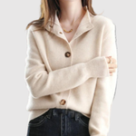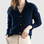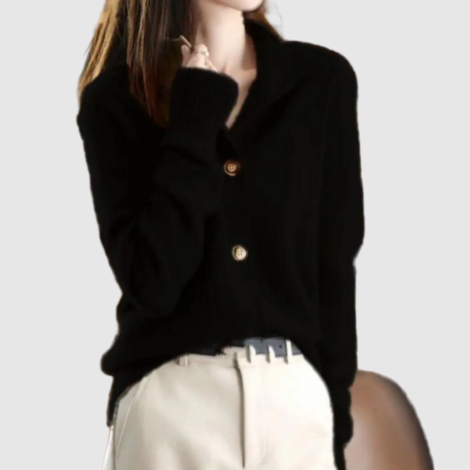 Класически кардиган с ревер яка и дискретно закопчаване, който съчетава комфорт с елегантен вид. Идеален за ежедневна употреба и по-официални поводи. Може да се комбинира с панталони, пола или дънки за модерен вид.