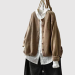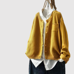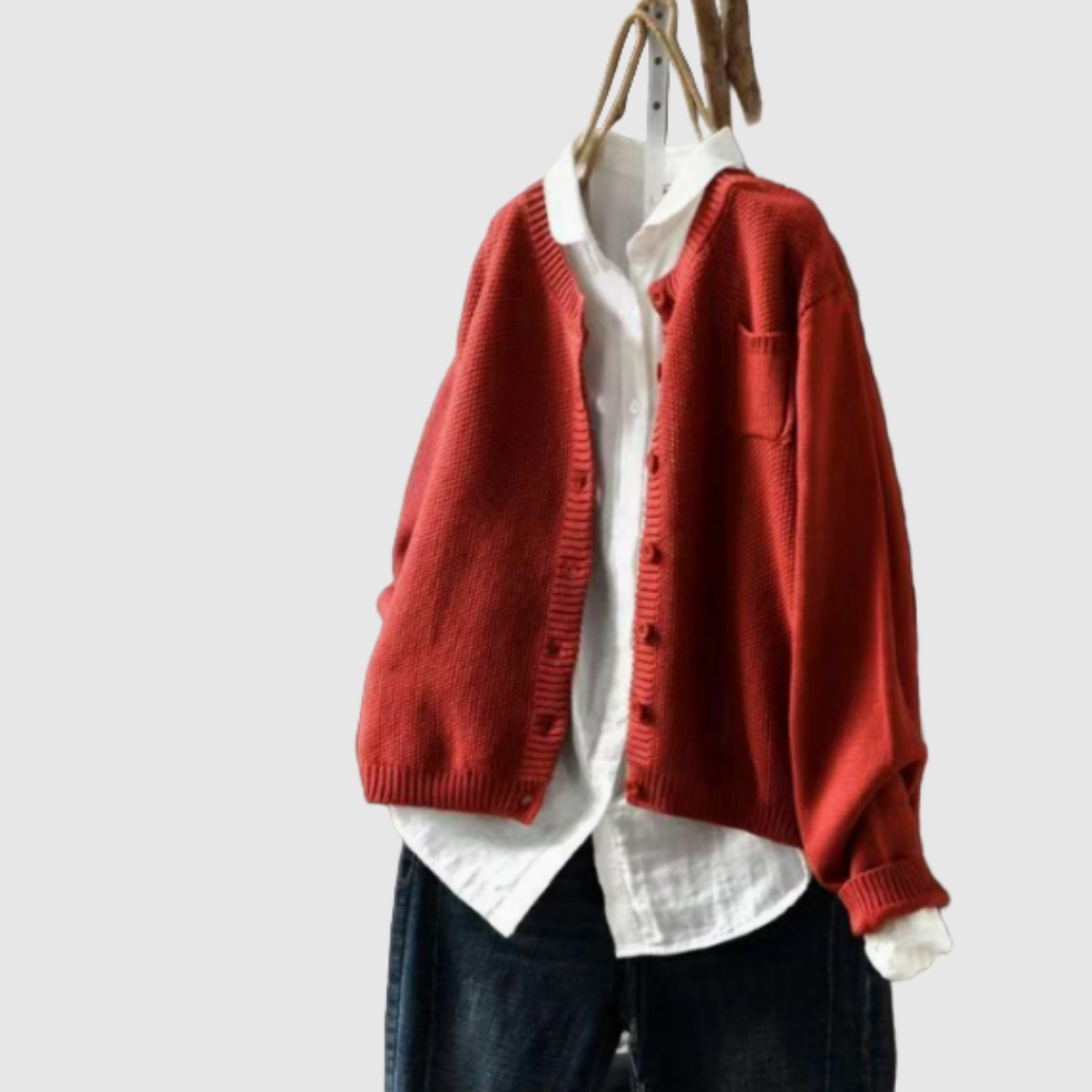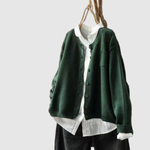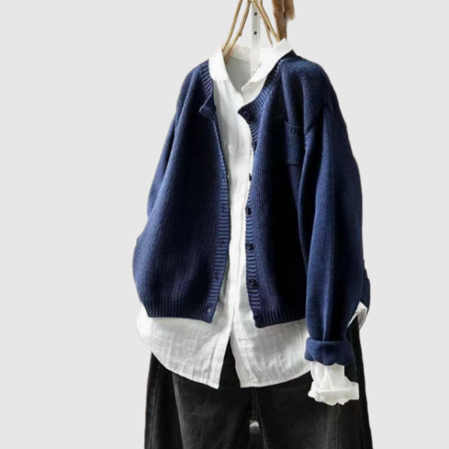 Вечен кардиган, който комбинира комфорт и простота. Изработен от мека памучна смес, идеален за стилизиране на слоеве през цялата година. С класически копчета и свободна кройка, той е задължителен елемент в гардероба на всеки.