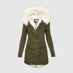 Тази парка е създадена за студени зимни дни. Меката, пухкава качулка предлага както лукс, така и допълнителна защита от студа. С регулируемата талия получавате женствена форма, докато издръжливият материал осигурява дълготраен комфорт и стил.