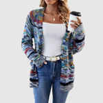 Елена – Плетен кардиган с многоцветен десен