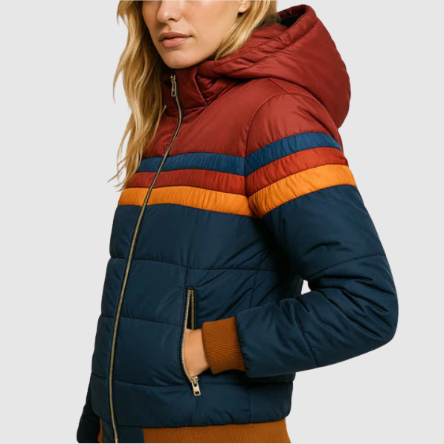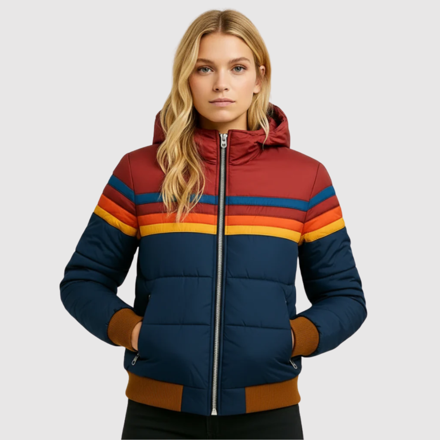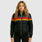 Това яке комбинира спортна инспирация с топъл, подплатен дизайн. Цветните ивици придават уникален ретро вид, докато меката изолация защитава от студа. Идеален избор за ежедневна употреба и за дейности на открито през преходните и зимните месеци.