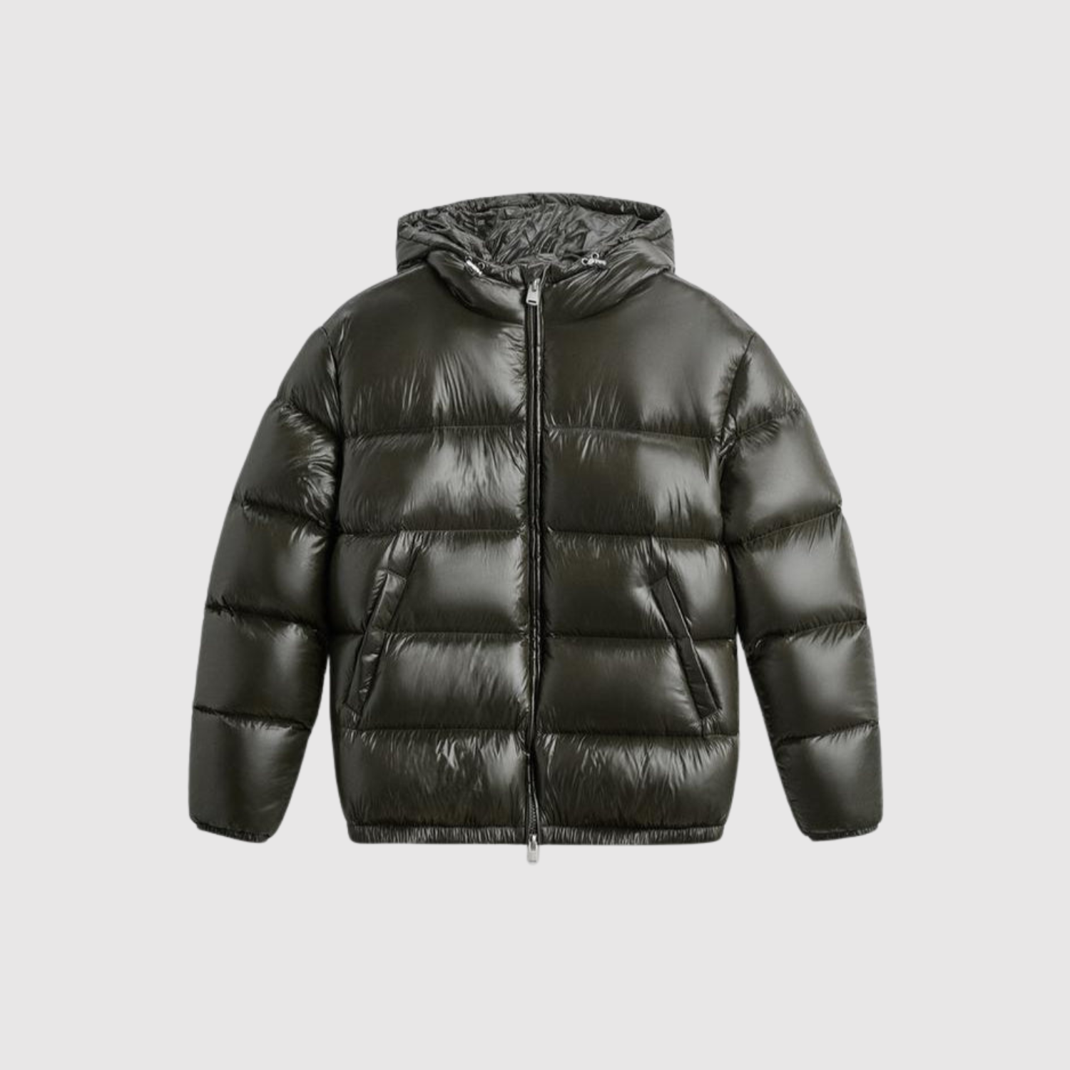 Тази топло подплатена якета комбинира елегантен дизайн с максимална функционалност. Плътната изолация и регулируемата качулка осигуряват оптимална защита от студа, докато гладката повърхност и минималистичната кройка придават модерен, градски вид.
