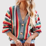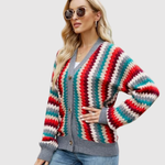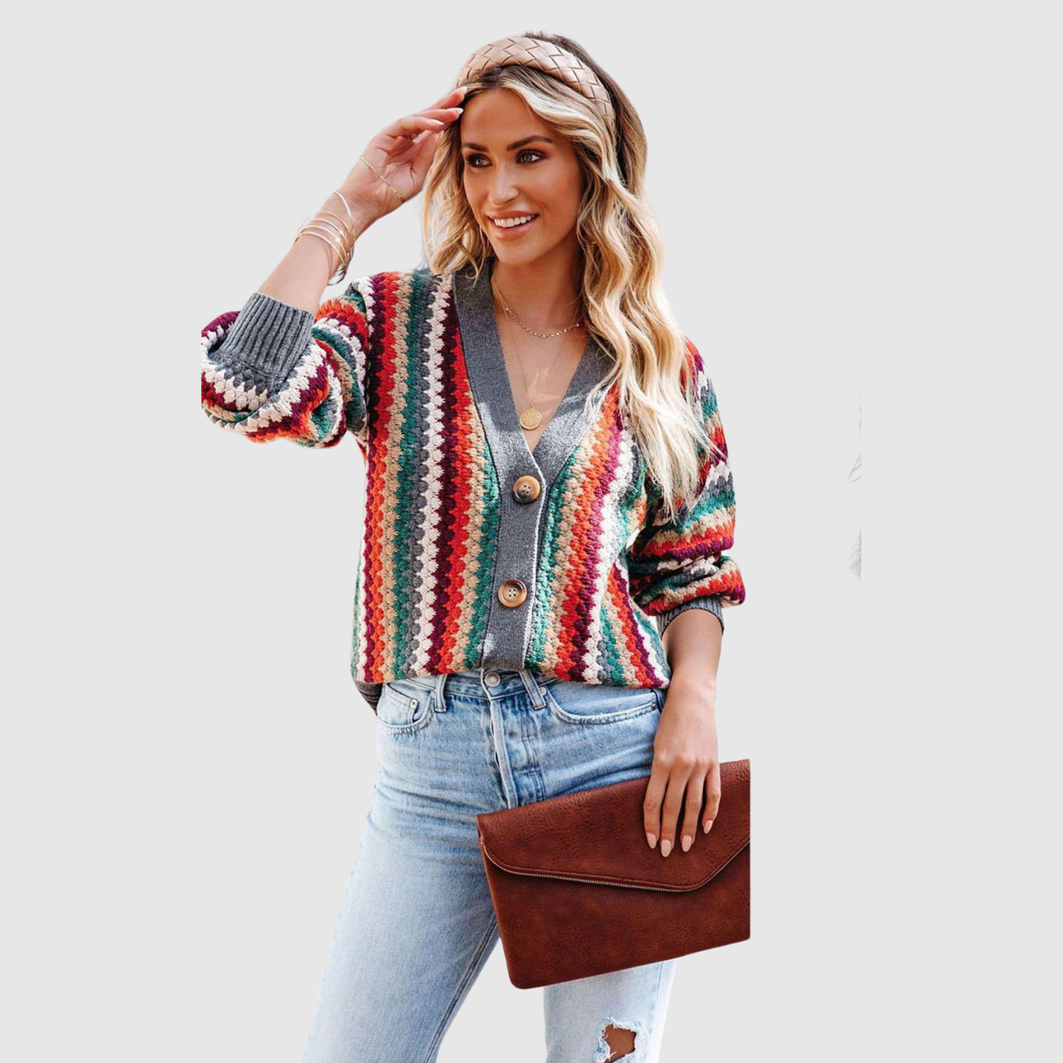 Забележителен и модерен кардиган в меки ивици от няколко цвята. Той има класическо закопчаване с копчета, свободна кройка и е идеален за придаване на свеж и модерен вид на ежедневния аутфит.