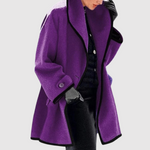 Тази oversize дамска палто комбинира комфорт и елегантност в един вечен дизайн. Ярките черни контрастни ръбове придават модерен вид, докато свободната кройка осигурява свобода на движение и небрежен вид. Перфектна за ежедневна употреба и по-елегантни поводи.