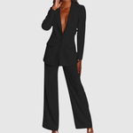 Този гащеризон комбинира мощен, модерен дизайн с женствена елегантност. Ярките цветове и чистите линии го правят идеален както за работа, така и за събития и вечерно носене. Комплект, който излъчва увереност и изисканост.