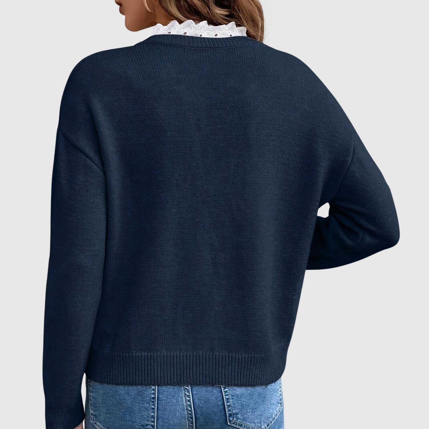 Клара - Вязан пуловер с V-образно деколте и дантела