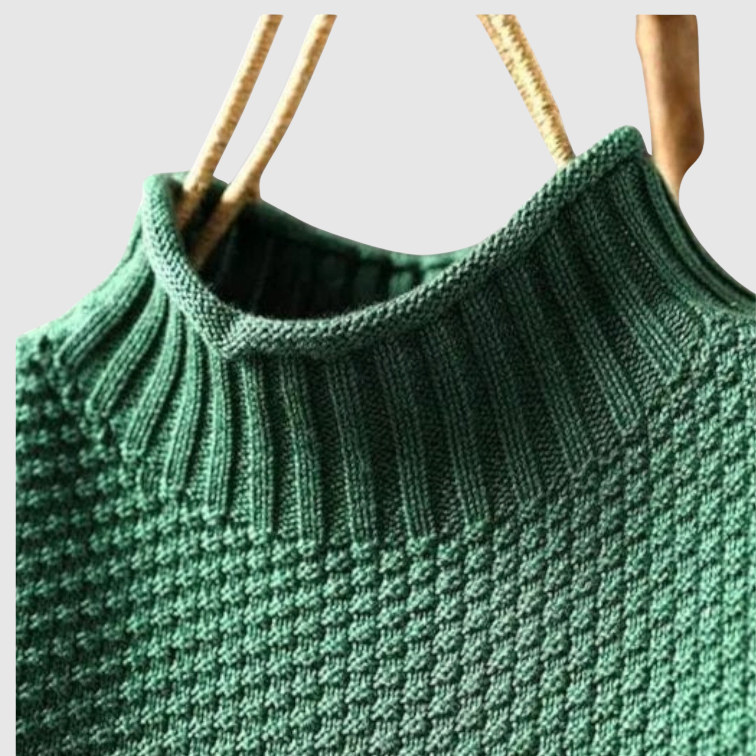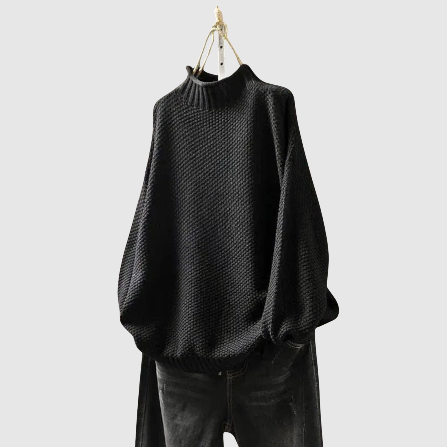Клара – Структурен пуловер с свободна кройка и висока яка