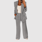 Този гащеризон комбинира класическо кроене с модерен акцент. С чистия си дизайн и удобна кройка е перфектен за офис, срещи или формални събития. Тъканта пада красиво и придава елегантен, стилен вид.