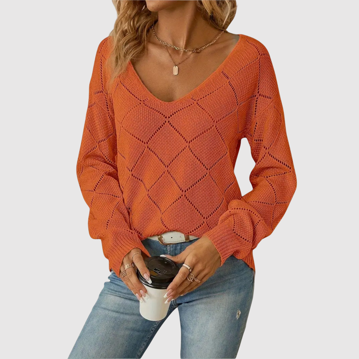 Клара – Пуловер с елегантно V-образно деколте